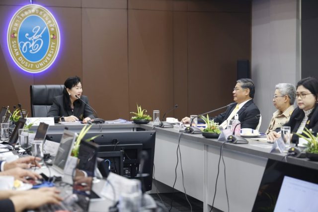 กองกลาง สำนักงานวิทยาเขตสุพรรณบุรี จัดประชุมคณะกรรมการประจำวิทยาเขตสุพรรณบุรี ครั้งที่ 5/2568 เพื่อการบริหารจัดการและการเตรียมการดำเนินงานในด้านต่างๆ และรายงานผลการดำเนินงานของแต่ละหน่วยงาน ต่อคณะกรรมการประจำวิทยาเขตฯ โดยมี ดร.วรานี เวสสุนทรเทพ รองอธิการบดีฝ่ายวิทยาเขตสุพรรณบุรี เป็นประธานในที่ประชุม พร้อมคณะกรรมการประจำวิทยาเขตสุพรรณบุรี เข้าประชุมโดยพร้อมเพียง ในวันจันทร์ที่ 20 ตุลาคม 2568 เวลา 09.30-12.00 น. ณ ห้องประชุม ชั้น 3 อาคารศูนย์ความเลิศด้านการพิมพ์และบรรจุภัณฑ์ มหาวิทยาลัยสวนดุสิต วิทยาเขตสุพรรณบุรี